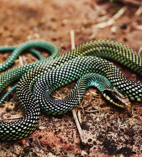 También conocida como corredora elegante, corredora moteada o lagunera (Drymobius margaritiferus) es una serpiente de talla mediana (mide entre 500 – 600 mm), son corredoras delgadas con ojos grandes y pupilas redondas.